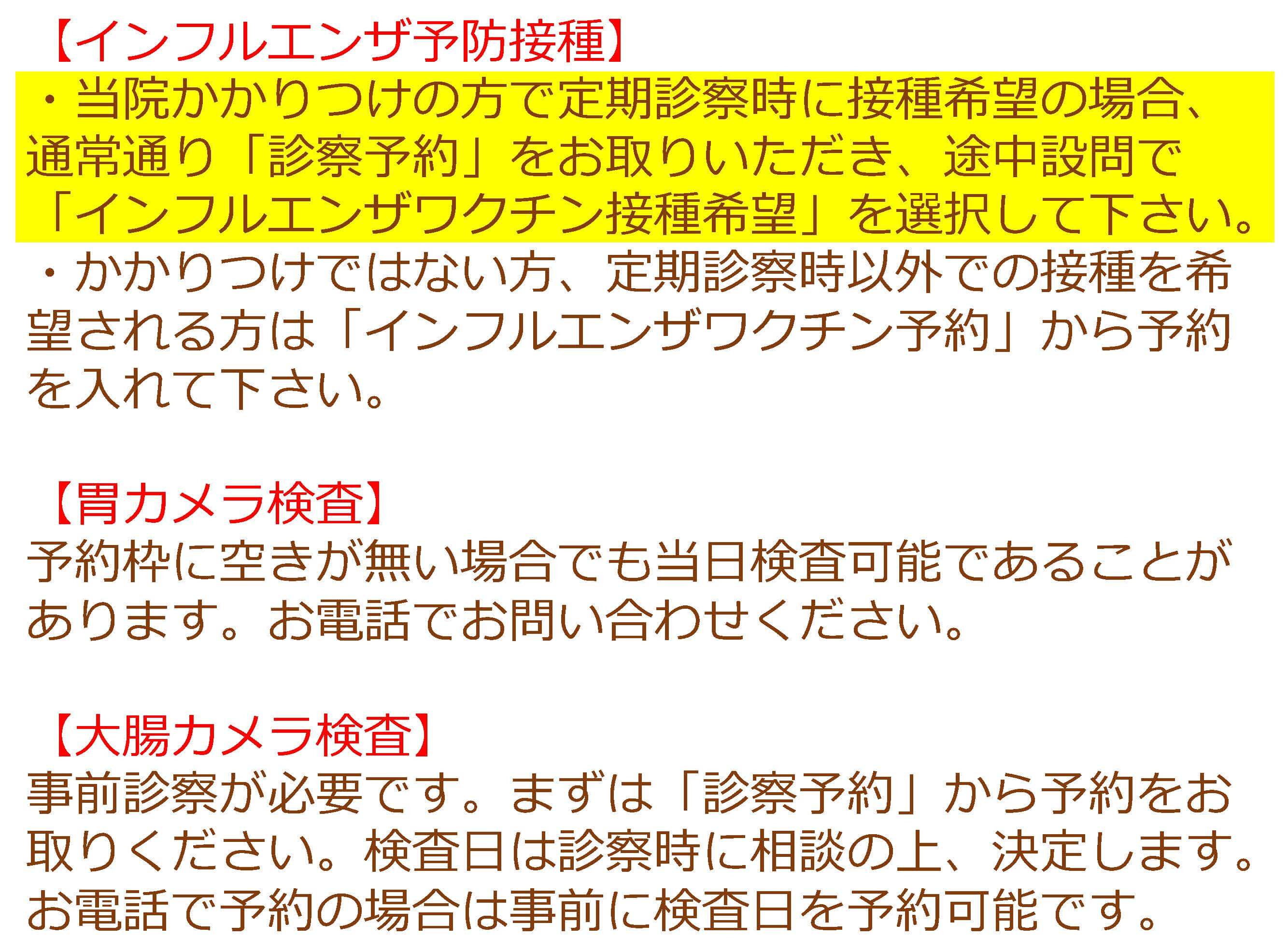 インフルエンザワクチン接種は1ヶ月後までの予約が可能です。